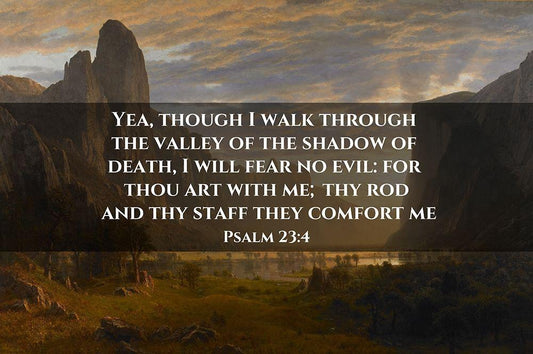 Bible Verse Quote Psalm 23:4, Albert Bierstadt - Looking Down Yosemite Valley White Modern Wood Framed Art Print with Double Matting by ArtsyQuotes