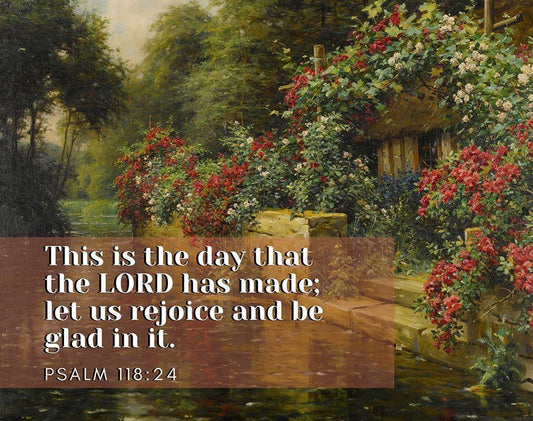 Bible Verse Quote Psalm 118:24, Louis Aston Knight, Rambling Roses on a Rivers Edge White Modern Wood Framed Art Print with Double Matting by ArtsyQuotes