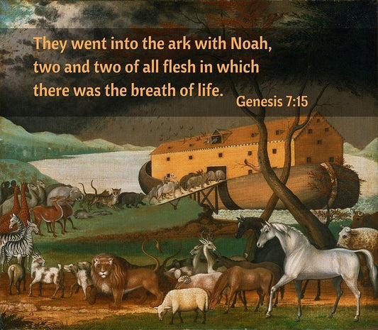 Bible Verse Quote Genesis 7:15, Edward Hicks - Noahs Ark White Modern Wood Framed Art Print with Double Matting by ArtsyQuotes