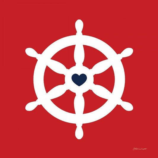 Ship Wheel On red White Modern Wood Framed Art Print with Double Matting by Marrott, Stephanie