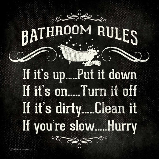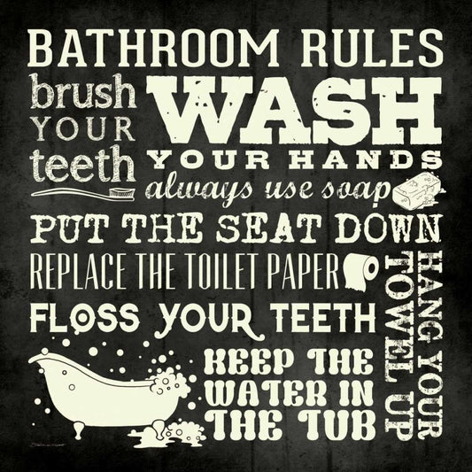 Bath Rules I White Modern Wood Framed Art Print with Double Matting by Marrott, Stephanie