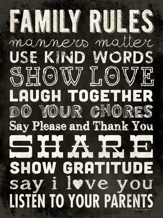 Family Rules - Black II White Modern Wood Framed Art Print with Double Matting by Marrott, Stephanie