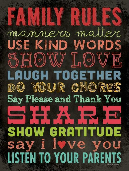Family Rules - Cream White Modern Wood Framed Art Print with Double Matting by Marrott, Stephanie