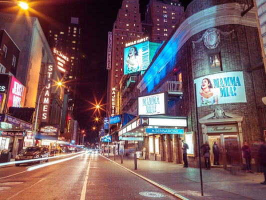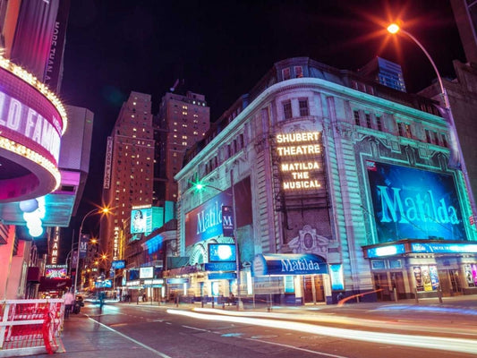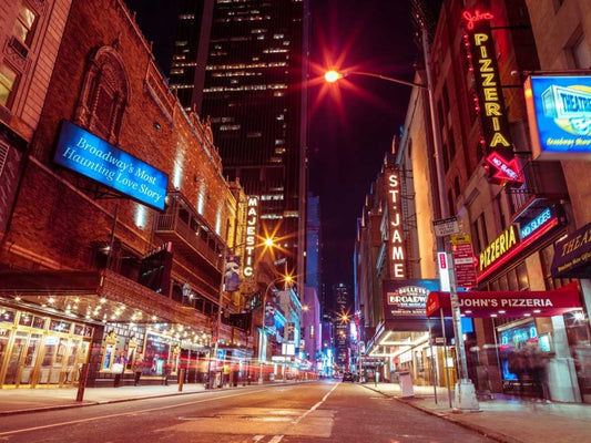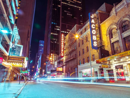 Times square and Broadway at night - New York City White Modern Wood Framed Art Print with Double Matting by Frank, Assaf
