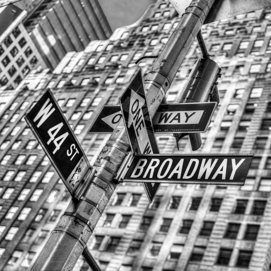 Street signs in New York City White Modern Wood Framed Art Print with Double Matting by Frank, Assaf