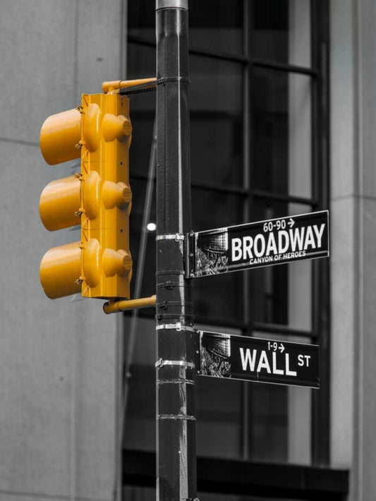 Wall street sign - New York city White Modern Wood Framed Art Print with Double Matting by Frank, Assaf