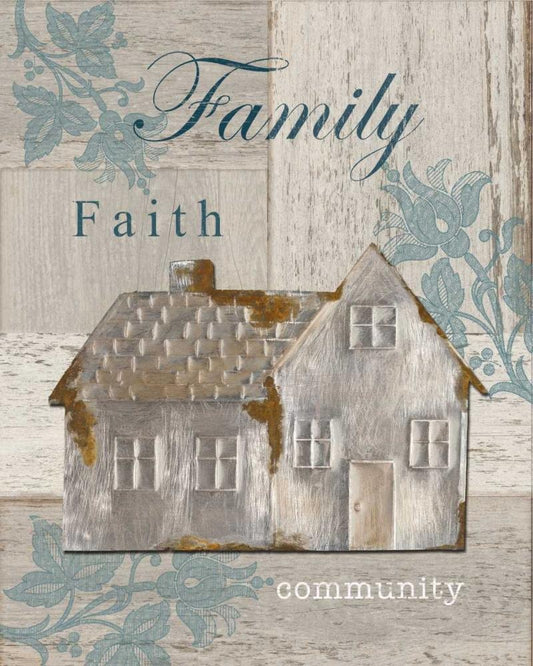 Family - Faith - Community White Modern Wood Framed Art Print with Double Matting by Appleman, Sam