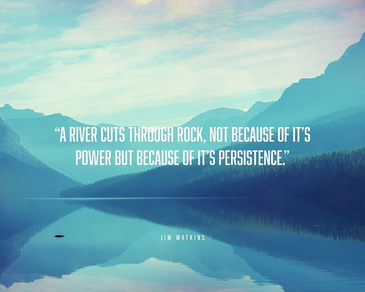 Jim Watkins Quote: River Cuts Through Rock White Modern Wood Framed Art Print with Double Matting by ArtsyQuotes