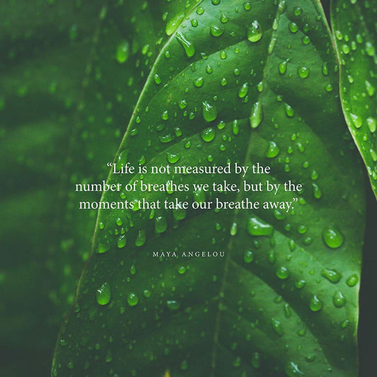 Maya Angelou Quote: Take Our Breathe Away White Modern Wood Framed Art Print with Double Matting by ArtsyQuotes