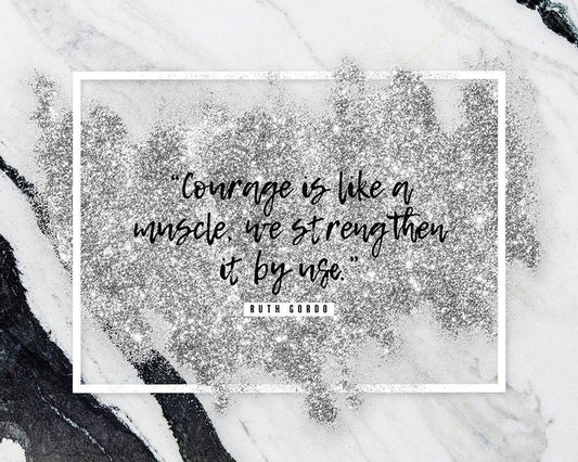 Ruth Gordo Quote: Courage White Modern Wood Framed Art Print with Double Matting by ArtsyQuotes