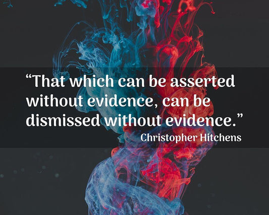 Christopher Hitchens Quote: Dismissed without Evidence White Modern Wood Framed Art Print with Double Matting by ArtsyQuotes