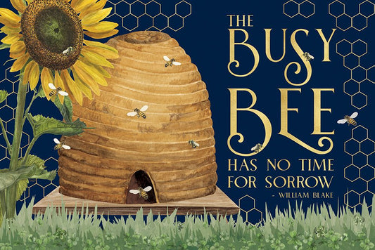 Honey Bees And Flowers Please landscape on blue III-Give me Honey Bees White Modern Wood Framed Art Print with Double Matting by Reed, Tara