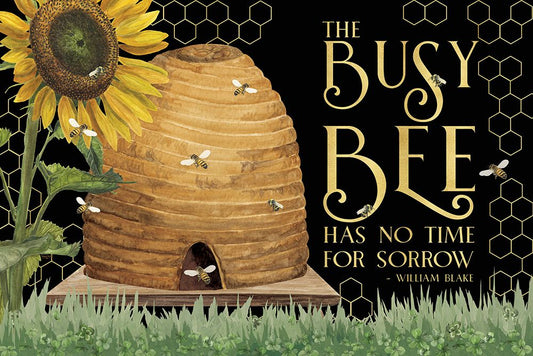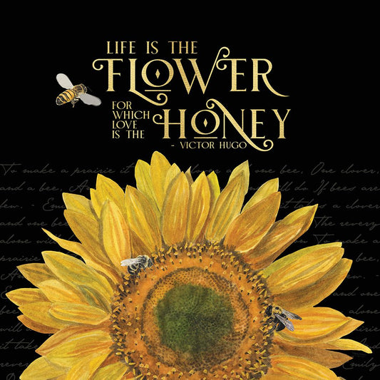Honey Bees And Flowers Please landscape on black III-Give me Honey Bees White Modern Wood Framed Art Print with Double Matting by Reed, Tara