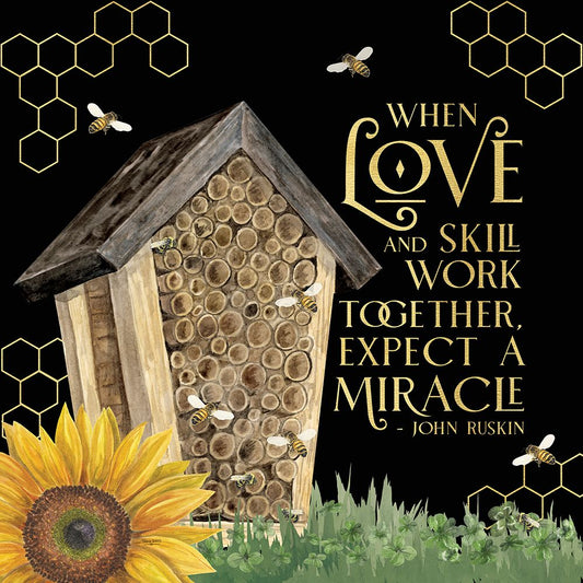 Honey Bees And Flowers Please on black V-Love and Skill White Modern Wood Framed Art Print with Double Matting by Reed, Tara