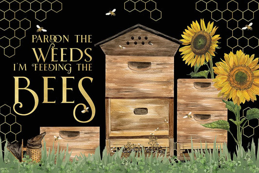 Honey Bees And Flowers Please landscape on black I-Pardon the Weeds White Modern Wood Framed Art Print with Double Matting by Reed, Tara