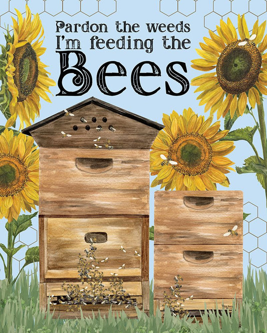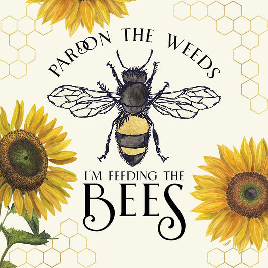 Honey Bees And Flowers Please landscape I-Pardon the Weeds White Modern Wood Framed Art Print with Double Matting by Reed, Tara