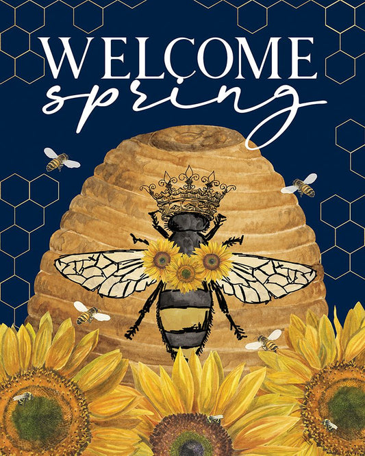 Honey Bees And Flowers Please portrait III-Welcome Spring White Modern Wood Framed Art Print with Double Matting by Reed, Tara
