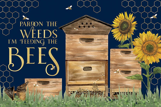 Honey Bees And Flowers Please landscape on blue I-Pardon the Weeds White Modern Wood Framed Art Print with Double Matting by Reed, Tara