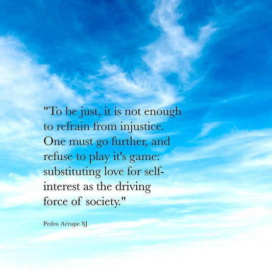 Pedro Arrupe SJ Quote: Injustice White Modern Wood Framed Art Print with Double Matting by ArtsyQuotes