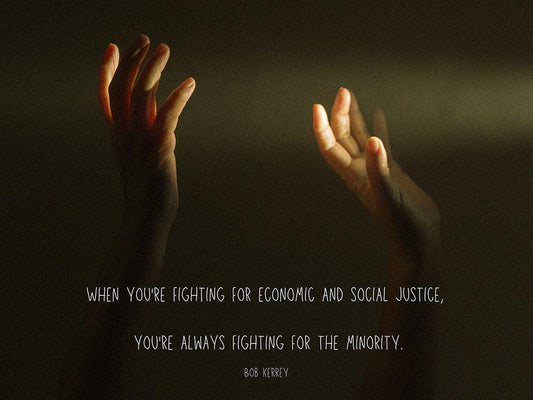 Bob Kerrey Quote: Economic and Social Justice White Modern Wood Framed Art Print with Double Matting by ArtsyQuotes