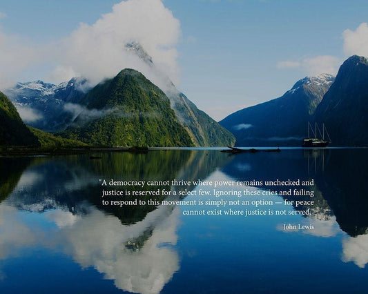 John Lewis Quote: Democracy White Modern Wood Framed Art Print with Double Matting by ArtsyQuotes