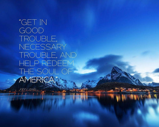 John Lewis Quote: Get in Good Trouble White Modern Wood Framed Art Print with Double Matting by ArtsyQuotes
