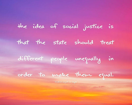 Friedrich August von Hayek Quote: Social Justice White Modern Wood Framed Art Print with Double Matting by ArtsyQuotes