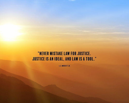 L.E. Modesitt Jr. Quote: Justice is an Ideal White Modern Wood Framed Art Print with Double Matting by ArtsyQuotes