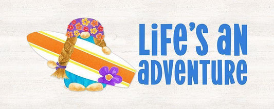 Gnomes of Summer sentiment IV-Adventure White Modern Wood Framed Art Print with Double Matting by Reed, Tara