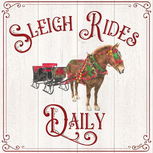 Vintage Christmas Signs V-Sleigh Rides White Modern Wood Framed Art Print with Double Matting by Reed, Tara
