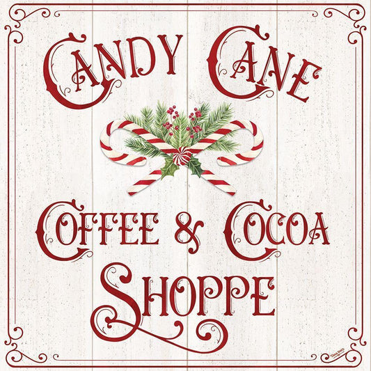 Vintage Christmas Signs I-Candy Cane Coffee White Modern Wood Framed Art Print with Double Matting by Reed, Tara