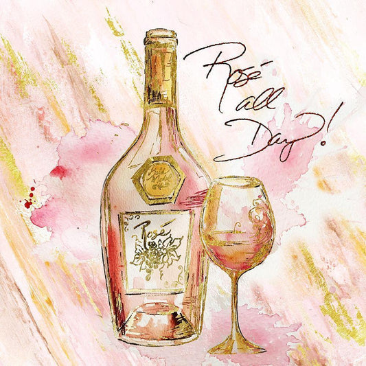 Rose All Day I (Wine All The Time) White Modern Wood Framed Art Print with Double Matting by Tre Sorelle Studios