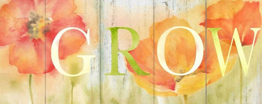 Watercolor Poppy Meadow Grow Sign White Modern Wood Framed Art Print with Double Matting by Coulter, Cynthia