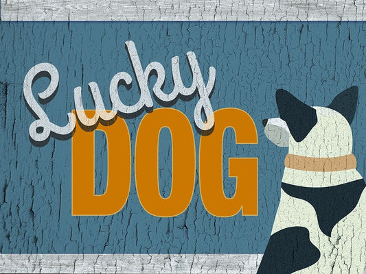 Lucky Dog White Modern Wood Framed Art Print with Double Matting by Yellow Cafe