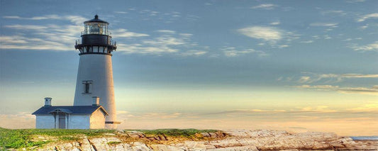 Lighthouse II White Modern Wood Framed Art Print with Double Matting by Yellow Cafe