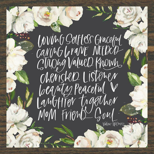 Mom Adjectives in Floral White Modern Wood Framed Art Print with Double Matting by Wieners, Valerie