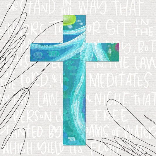 Blue Cross White Modern Wood Framed Art Print with Double Matting by Wieners, Valerie