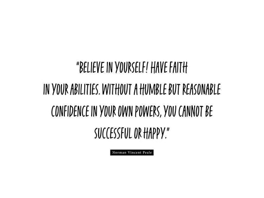 Norman Vincent Peale Quote: Believe in Yourself White Modern Wood Framed Art Print with Double Matting by ArtsyQuotes
