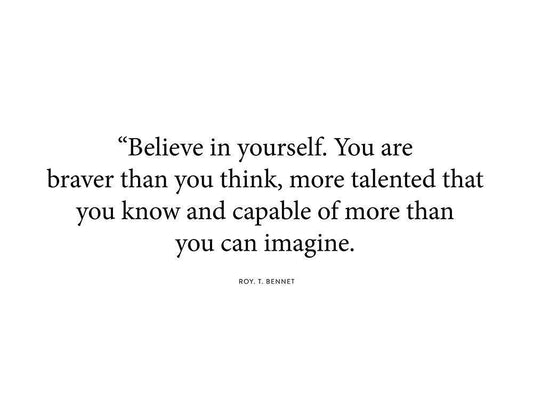 Roy T. Bennett Quote: Believe in Yourself White Modern Wood Framed Art Print with Double Matting by ArtsyQuotes