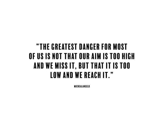 Michealangelo Quote: The Greatest Danger White Modern Wood Framed Art Print with Double Matting by ArtsyQuotes