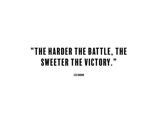 Les Brown Quote: Sweeter the Victory White Modern Wood Framed Art Print with Double Matting by ArtsyQuotes