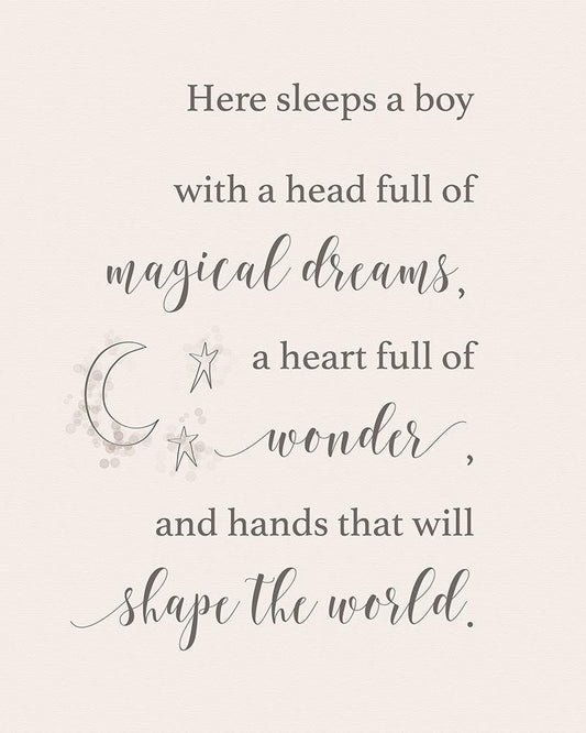 Here Sleeps a Boy White Modern Wood Framed Art Print with Double Matting by Moss, Tara