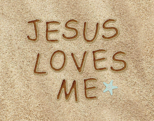 Jesus Loves Me Sand White Modern Wood Framed Art Print with Double Matting by Moss, Tara