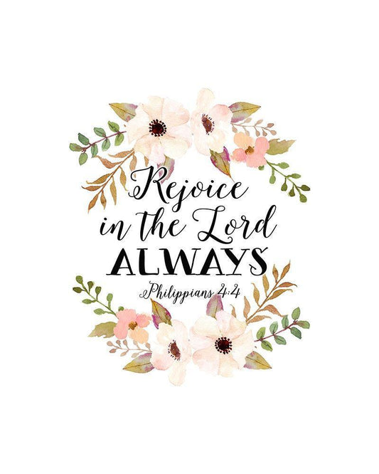 Philippians 4:4 White Modern Wood Framed Art Print with Double Matting by Moss, Tara