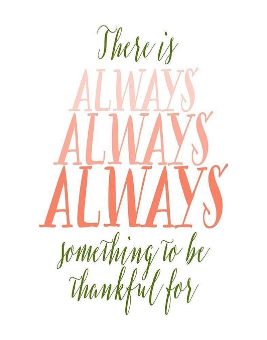 Be Thankful - Green and Coral White Modern Wood Framed Art Print with Double Matting by Moss, Tara