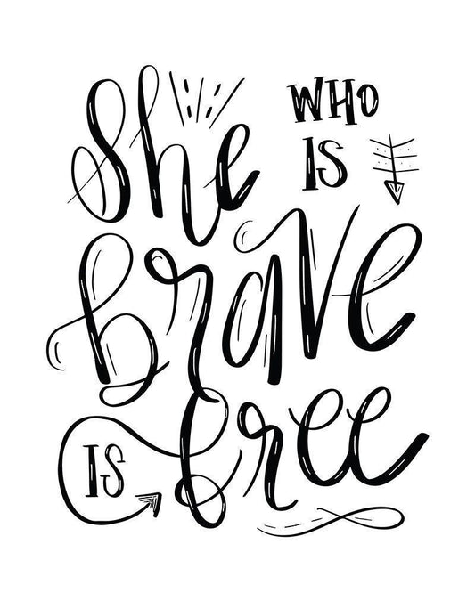 She Who is Brave - Hand Lettered White Modern Wood Framed Art Print with Double Matting by Moss, Tara