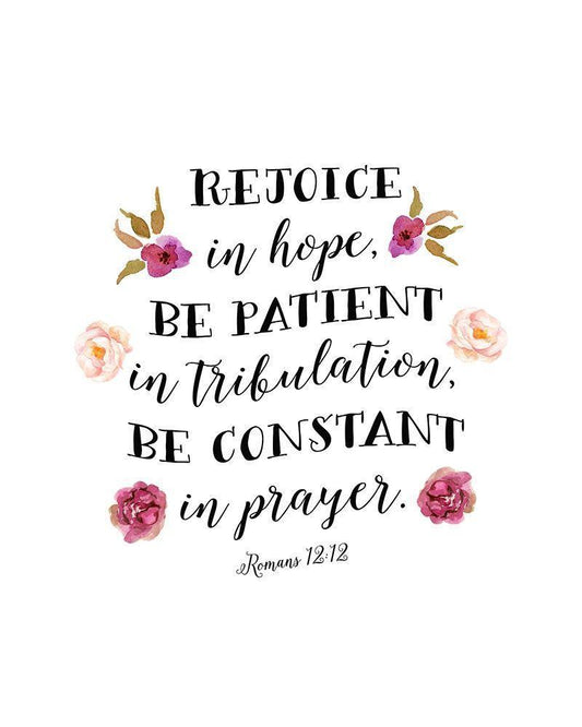 Romans 12:12 White Modern Wood Framed Art Print with Double Matting by Moss, Tara