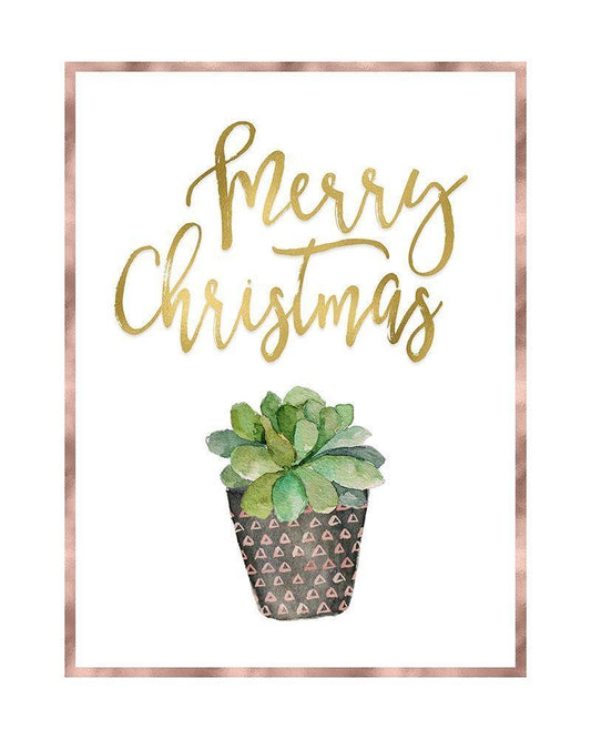 Merry Christmas Succulent White Modern Wood Framed Art Print with Double Matting by Moss, Tara