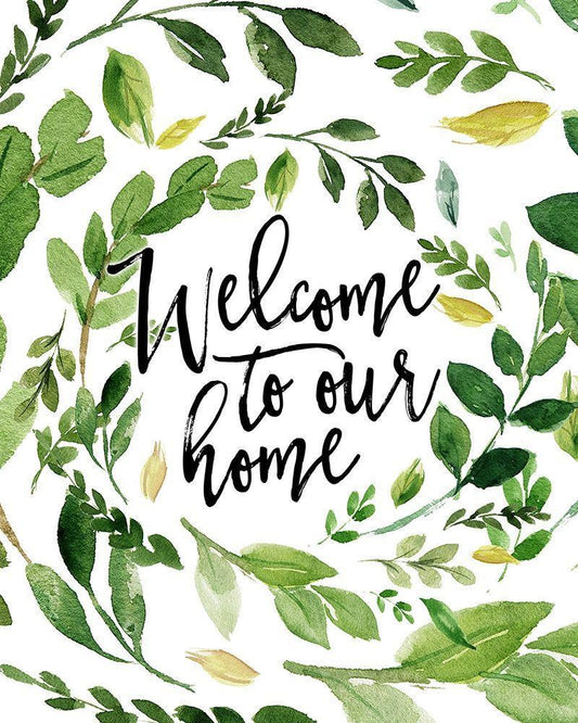 Welcome to Our Home White Modern Wood Framed Art Print with Double Matting by Moss, Tara