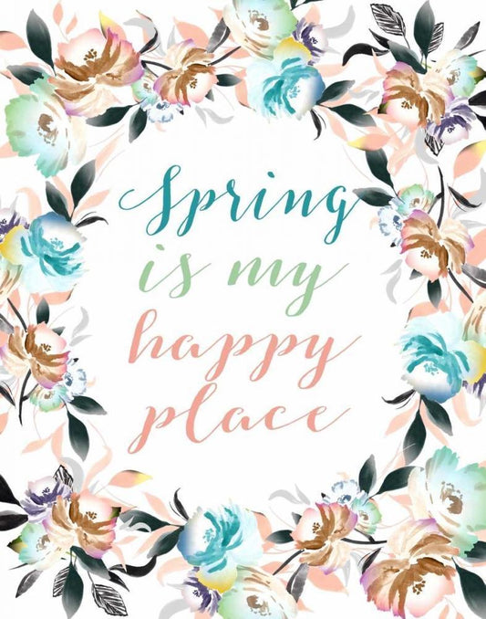 Spring is My Happy Place White Modern Wood Framed Art Print with Double Matting by Moss, Tara